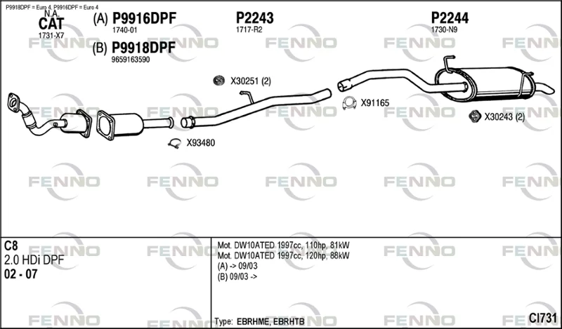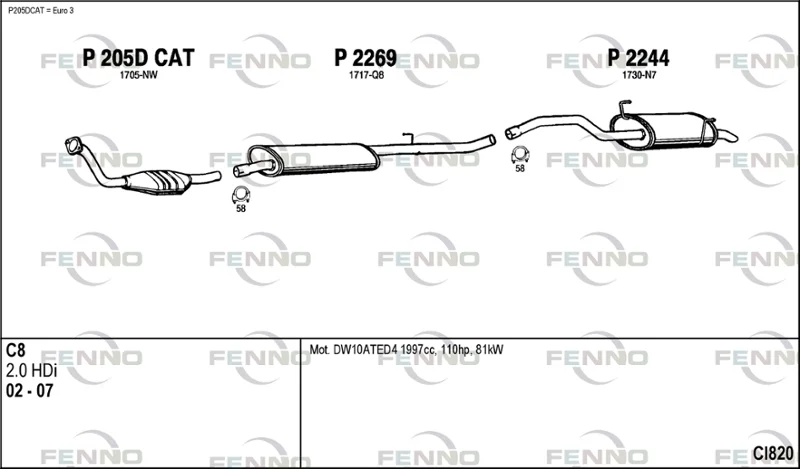CITROËN C8 (EA_, EB_) 2.0 HDi - Výfukový systém - kompletní od 7/2002, 1997 ccm, 79 kW, 107 hp, RHM (DW10ATED4), RHT (DW10ATED4), velkoprostorová limuzína