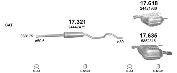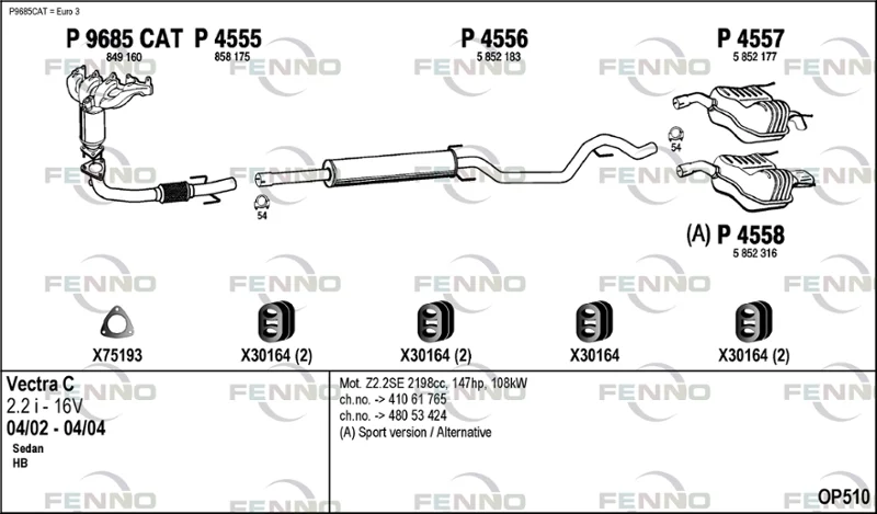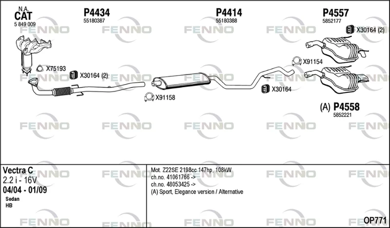 OPEL VECTRA C GTS (Z02) 2.2 16V (F68) - Výfukový systém - kompletní od 8/2002 do 8/2008, 2198 ccm, 108 kW, 147 hp, Z 22 SE, Šikmá zadní část