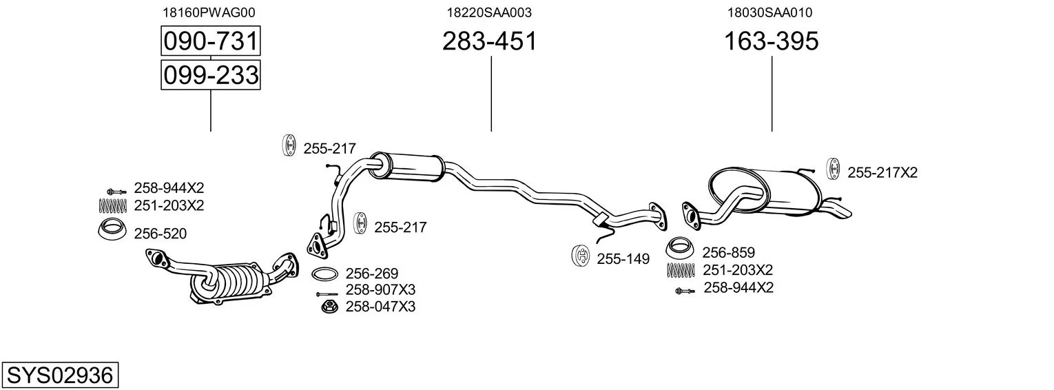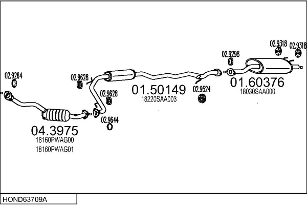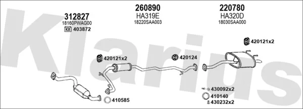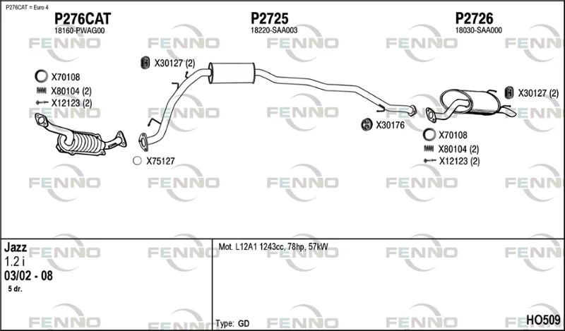 HONDA JAZZ II (GD_, GE3, GE2) 1.2 i-DSI (GD5, GE2) - Výfukový systém - kompletní od 3/2002 do 7/2008, 1243 ccm, 57 kW, 78 hp, L12A1, L12A4, Šikmá zadní část