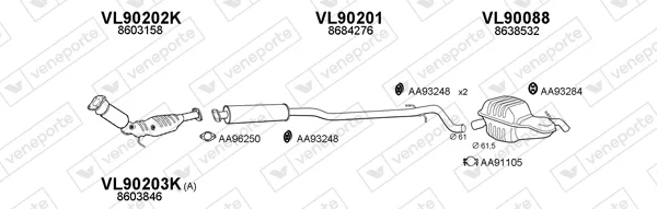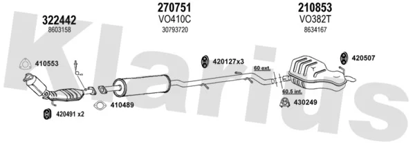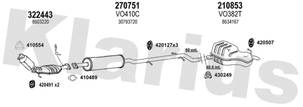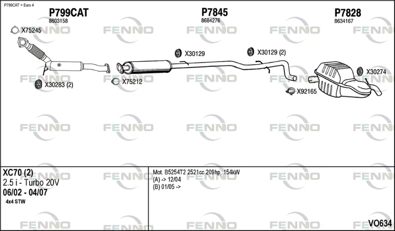 VOLVO XC70 I Cross Country (295) 2.5 T XC AWD - Výfukový systém - kompletní od 9/2002 do 8/2007, 2521 ccm, 154 kW, 209 hp, B 5254 T2, kombi