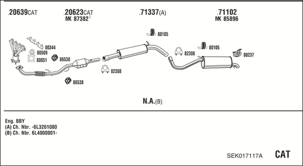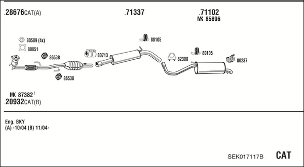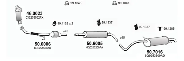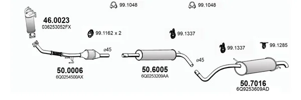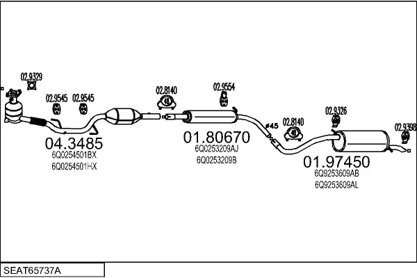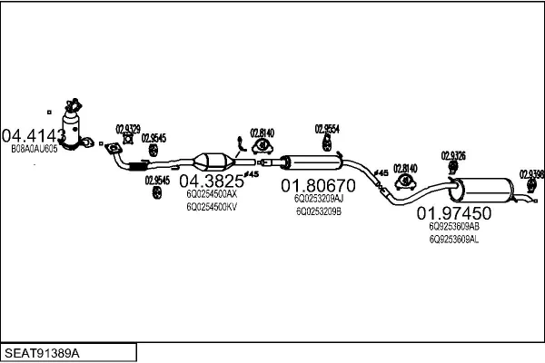 SEAT CORDOBA (6L2) 1.4 16V - Výfukový systém - kompletní od 9/2002 do 12/2007, 1390 ccm, 55 kW, 75 hp, BBY, BKY, limuzína