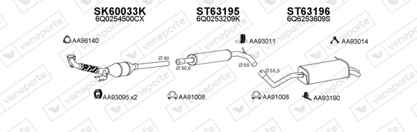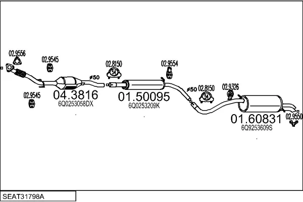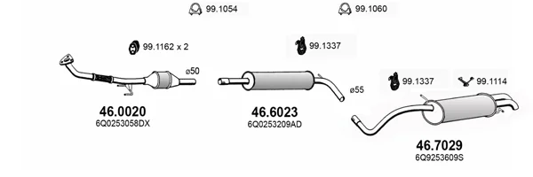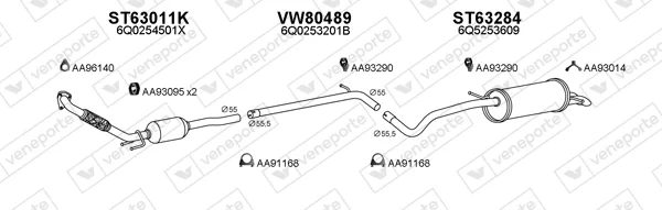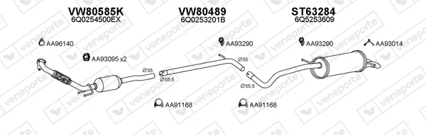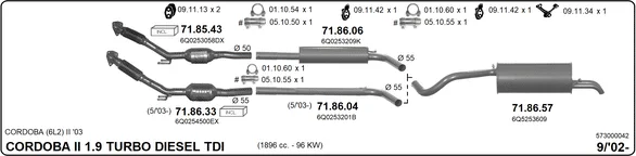 SEAT CORDOBA (6L2) 1.9 TDI - Výfukový systém - kompletní od 10/2002 do 11/2009, 1896 ccm, 96 kW, 131 hp, ASZ, BLT, limuzína