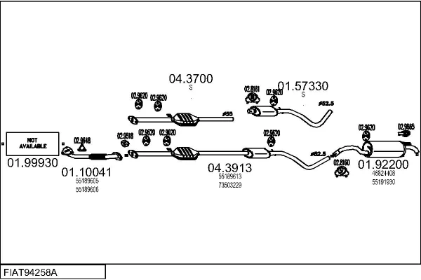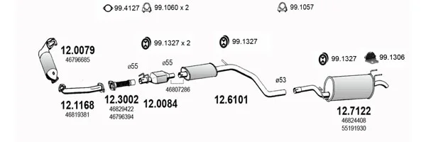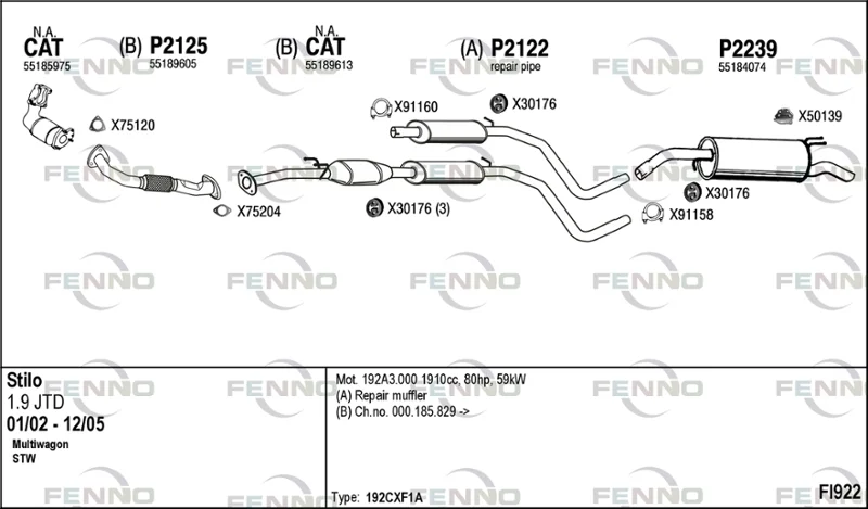 FIAT STILO Multi Wagon (192_) 1.9 JTD - Výfukový systém - kompletní od 1/2003 do 8/2008, 1910 ccm, 59 kW, 80 hp, 192 A3.000, kombi