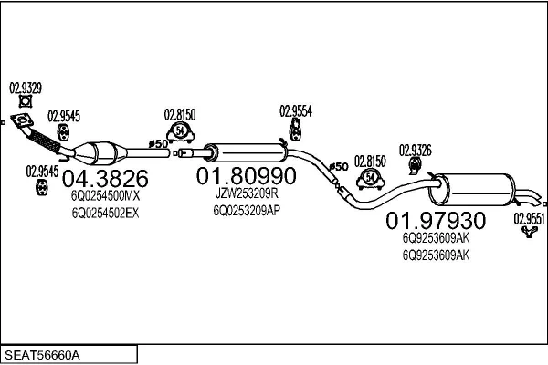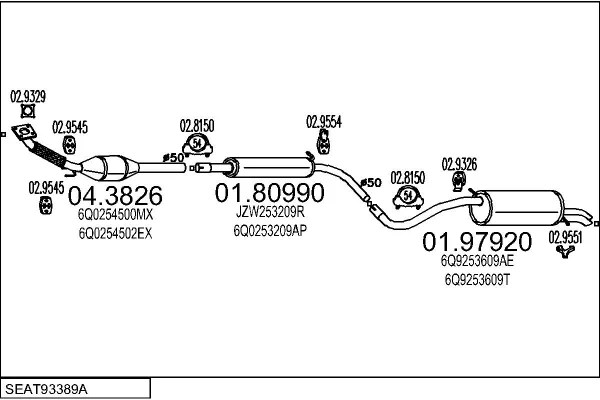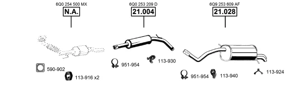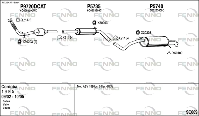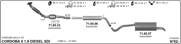 SEAT CORDOBA (6L2) 1.9 SDI - Výfukový systém - kompletní od 9/2002 do 11/2009, 1896 ccm, 47 kW, 64 hp, ASY, limuzína