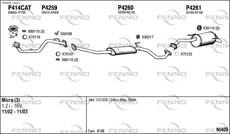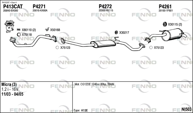 NISSAN MICRA III (K12) 1.2 16V - Výfukový systém - kompletní od 1/2003 do 6/2010, 1240 ccm, 59 kW, 80 hp, CG12DE, CR12DE, Šikmá zadní část
