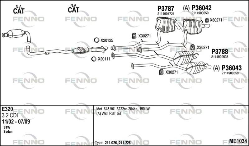 MERCEDES-BENZ E-CLASS T-Model (S211) E 320 T CDI (211.226) - Výfukový systém - kompletní od 3/2003 do 7/2009, 3222 ccm, 150 kW, 204 hp, OM 648.961, kombi