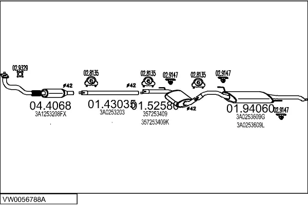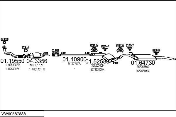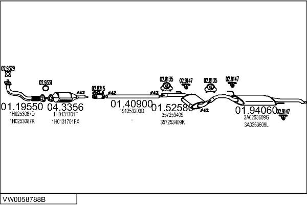 VW PASSAT B3/B4 (3A2, 35I) 1.8 - Výfukový systém - kompletní od 8/1990 do 8/1996, 1781 ccm, 55 kW, 75 hp, AAM, limuzína