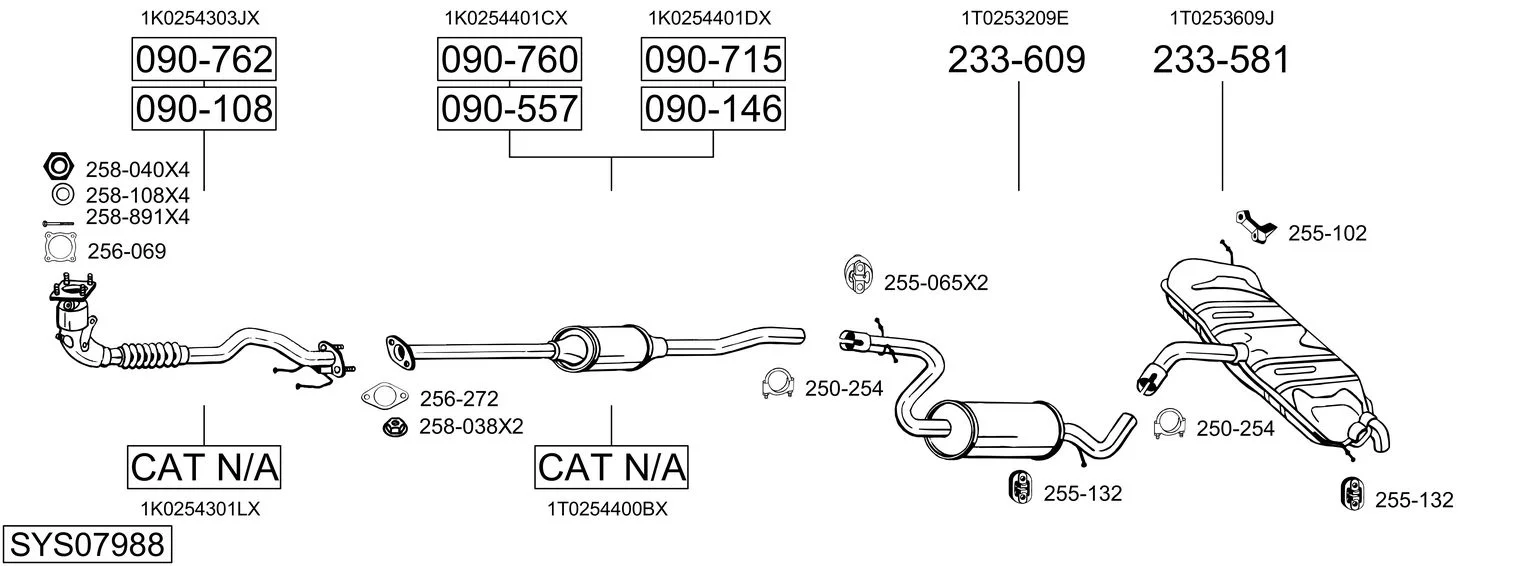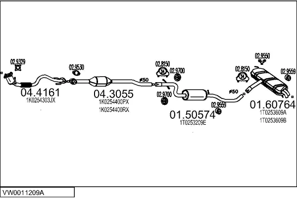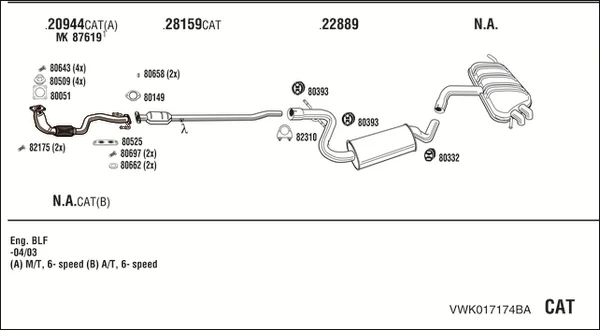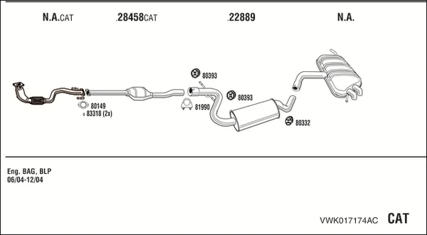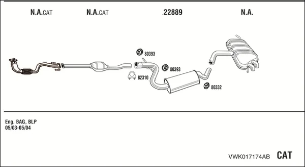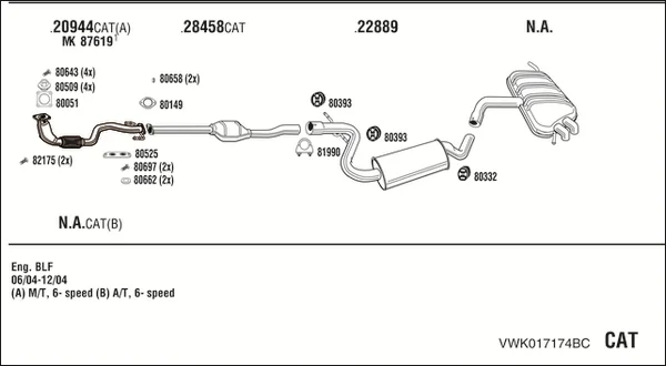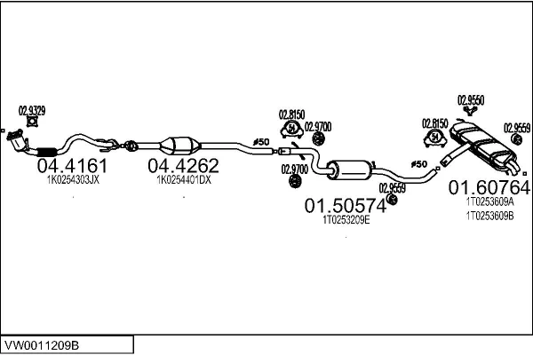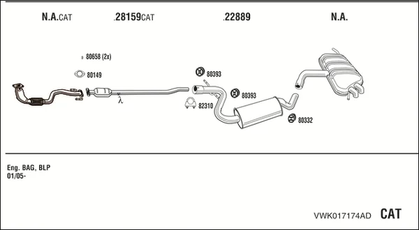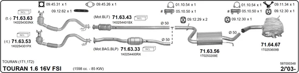 VW TOURAN (1T1, 1T2) 1.6 FSI - Výfukový systém - kompletní od 2/2003 do 1/2007, 1598 ccm, 85 kW, 115 hp, BAG, BLF, BLP, velkoprostorová limuzína