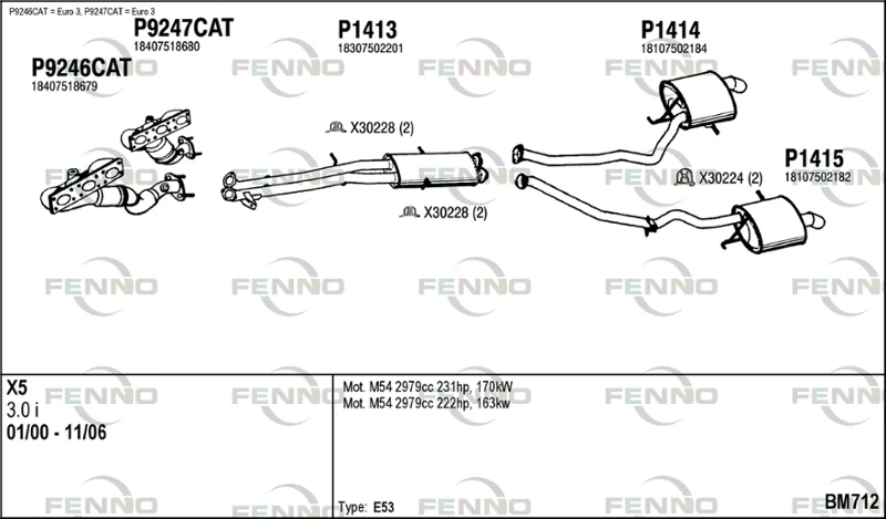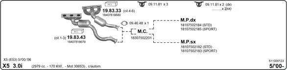 BMW X5 (E53) 3.0 i - Výfukový systém - kompletní od 4/2000 do 10/2006, 2979 ccm, 170 kW, 231 hp, M54 B30 (306S3), SUV