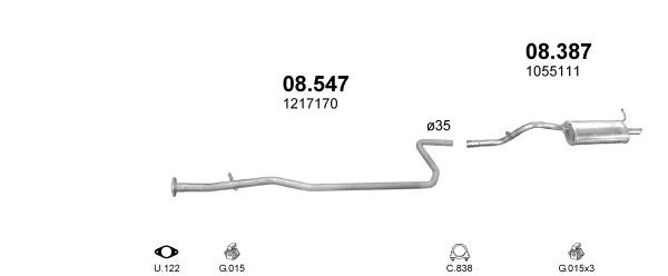 FORD KA (RB_) 1.3 i ROCAM - Výfukový systém - kompletní od 8/2002 do 11/2008, 1299 ccm, 51 kW, 70 hp, A9A, A9B, Šikmá zadní část