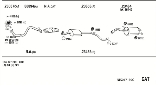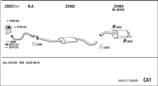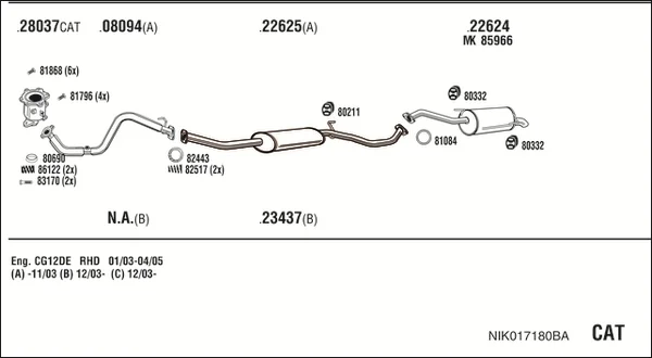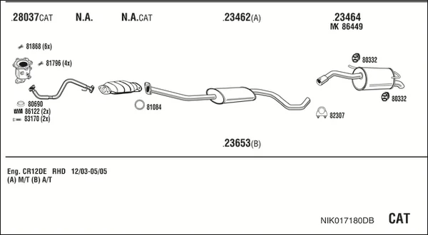 NISSAN MICRA III (K12) 1.2 16V - Výfukový systém - kompletní od 1/2003 do 6/2010, 1240 ccm, 48 kW, 65 hp, CG12DE, CR12DE, Šikmá zadní část