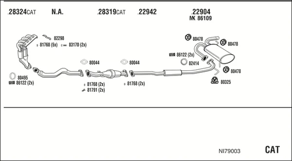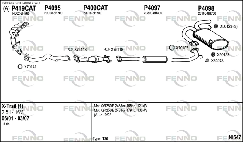 NISSAN X-TRAIL I (T30) 2.5 4x4 - Výfukový systém - kompletní od 9/2002 do 1/2013, 2488 ccm, 121 kW, 165 hp, QR25DE, SUV