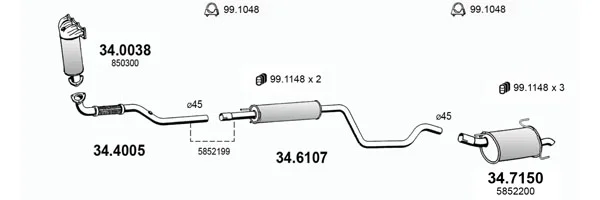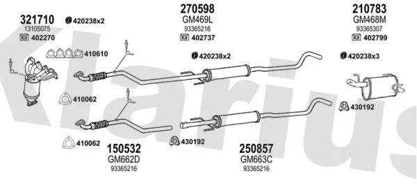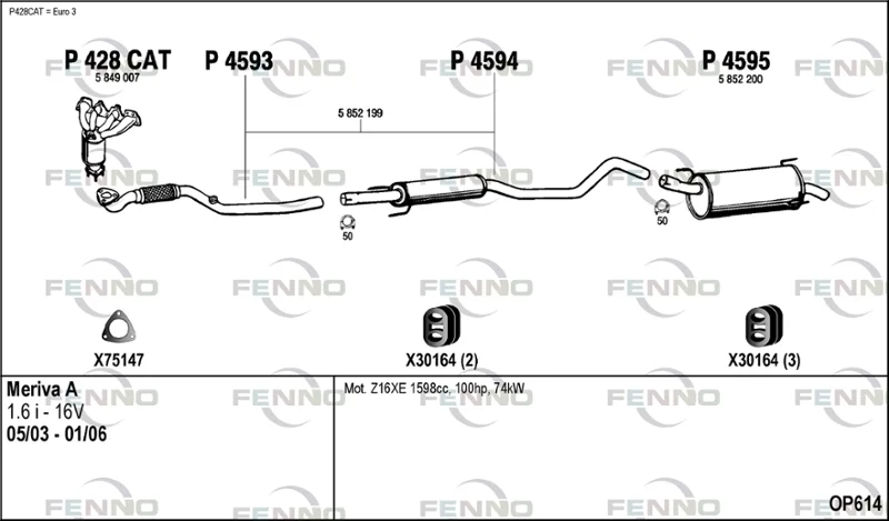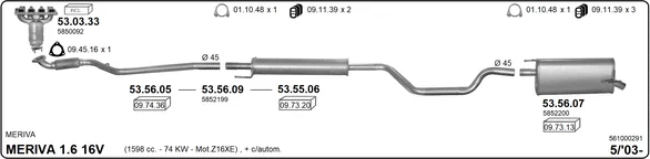 OPEL MERIVA A velkoprostorová limuzína (X03) 1.6 16V (E75) - Výfukový systém - kompletní od 5/2003 do 1/2006, 1598 ccm, 74 kW, 100 hp, Z 16 XE, velkoprostorová limuzína