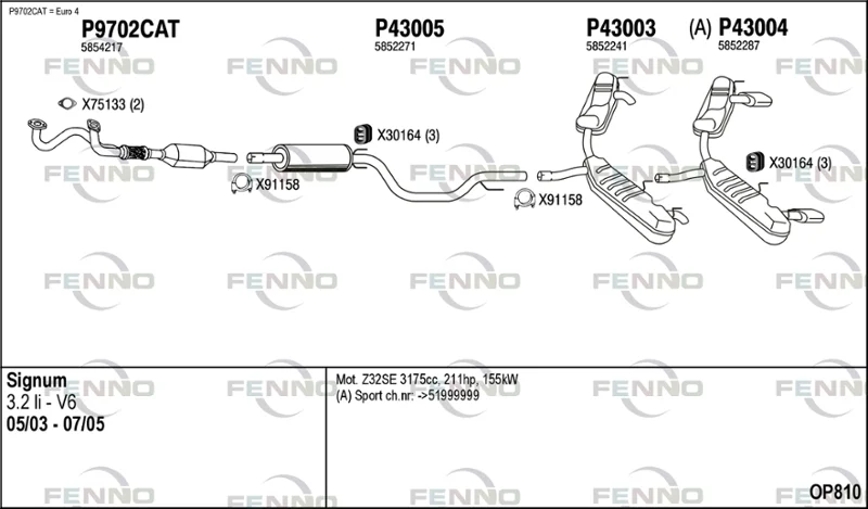 OPEL SIGNUM Šikmá zadní část (Z03) 3.2 V6 (F48) - Výfukový systém - kompletní od 5/2003 do 7/2005, 3175 ccm, 155 kW, 211 hp, Z 32 SE, Šikmá zadní část