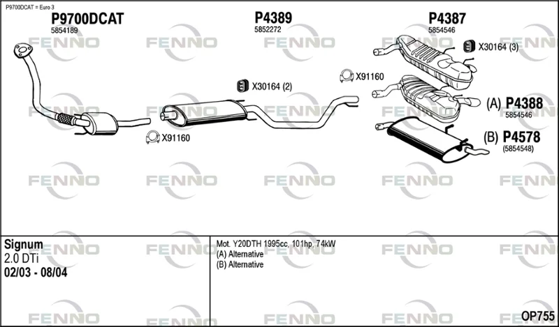 OPEL SIGNUM Šikmá zadní část (Z03) 2.0 DTI (F48) - Výfukový systém - kompletní od 5/2003 do 4/2004, 1995 ccm, 74 kW, 100 hp, Y 20 DTH, Šikmá zadní část