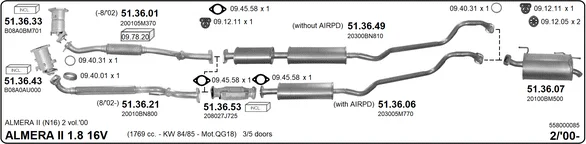 NISSAN ALMERA II Hatchback (N16) 1.8 - Výfukový systém - kompletní od 10/2002 do 9/2006, 1769 ccm, 85 kW, 116 hp, QG18DE, Šikmá zadní část