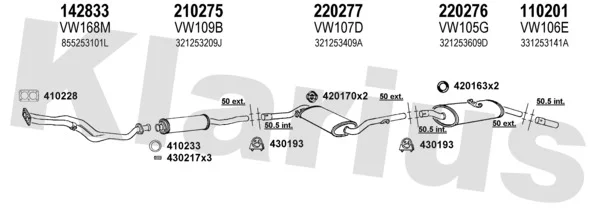 VW SANTANA (32B) 1.8 - Výfukový systém - kompletní od 1/1983 do 12/1984, 1781 ccm, 66 kW, 90 hp, DS, limuzína