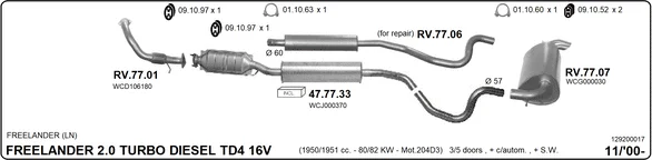 LAND ROVER FREELANDER I (L314) 2.0 Td4 4x4 - Výfukový systém - kompletní od 3/2001 do 10/2006, 1951 ccm, 80 kW, 109 hp, 204D3(M47D20), uzavřený terénní vůz