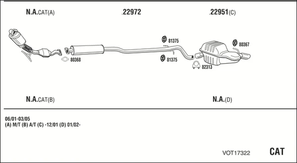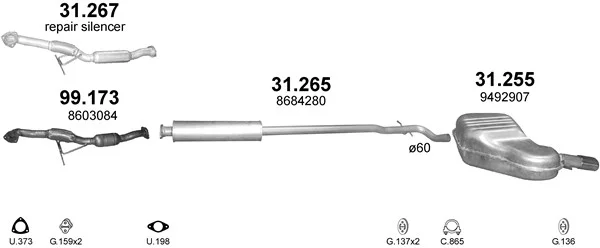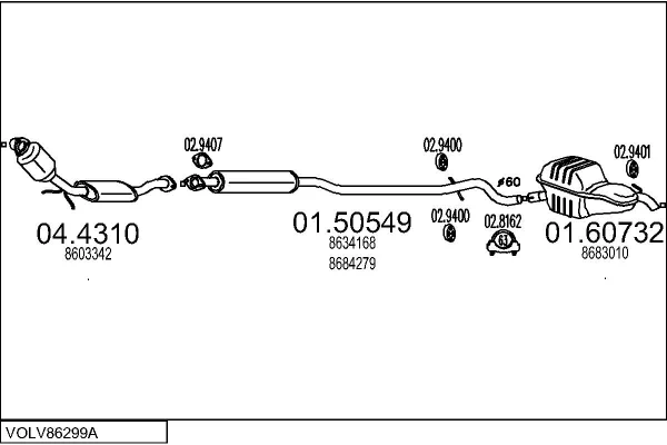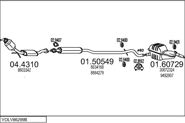 VOLVO S60 I (384) 2.4 D - Výfukový systém - kompletní od 5/2001 do 4/2010, 2401 ccm, 96 kW, 130 hp, D 5244 T2, limuzína