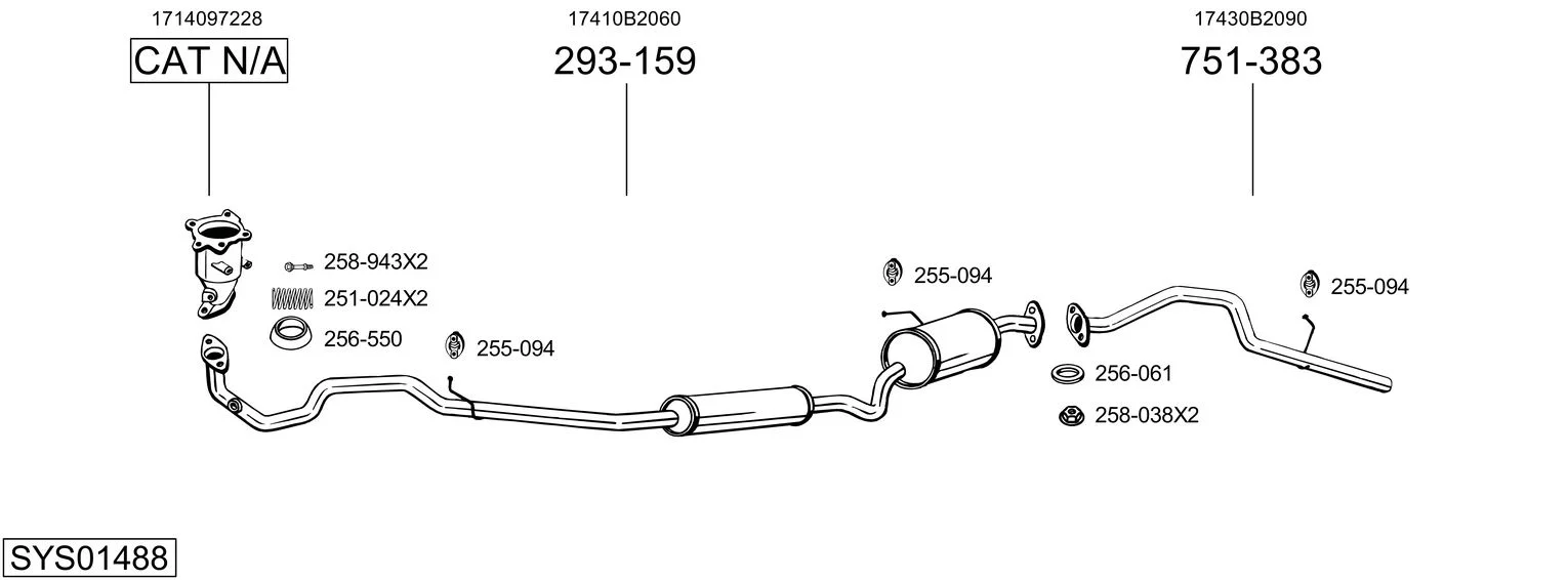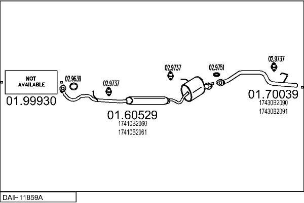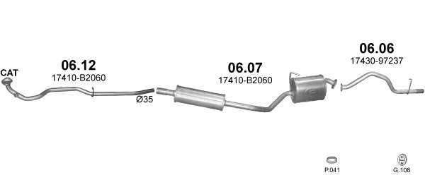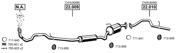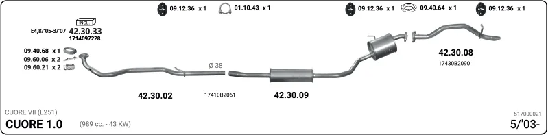 DAIHATSU CUORE VI (L251, L250_, L260_) 1.0 - Výfukový systém - kompletní od 5/2003, 989 ccm, 43 kW, 58 hp, EJ-VE, Šikmá zadní část