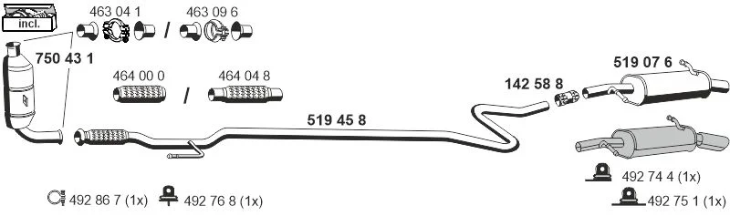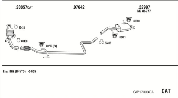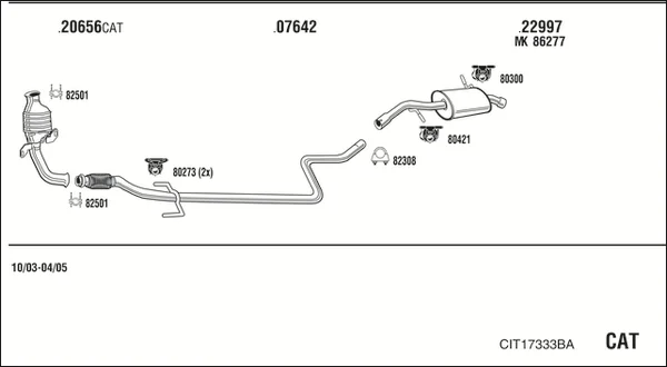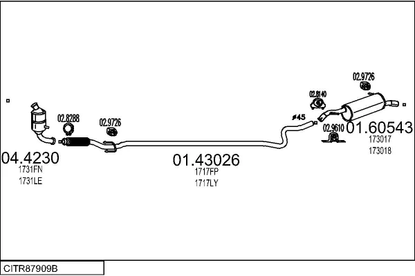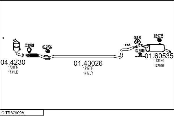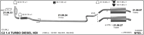 CITROËN C2 (JM_) 1.4 HDi - Výfukový systém - kompletní od 7/2003 do 12/2009, 1398 ccm, 50 kW, 68 hp, 8HX (DV4TD), 8HZ (DV4TD), Šikmá zadní část