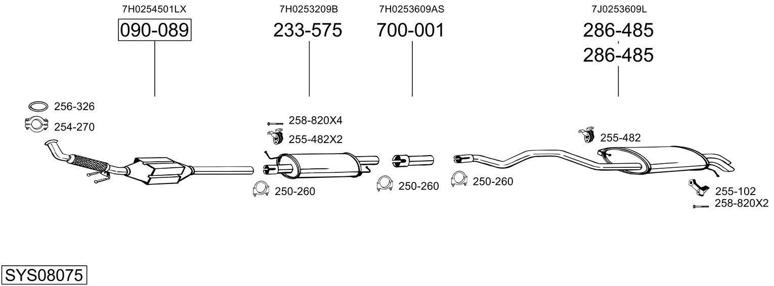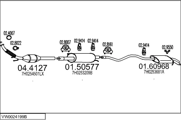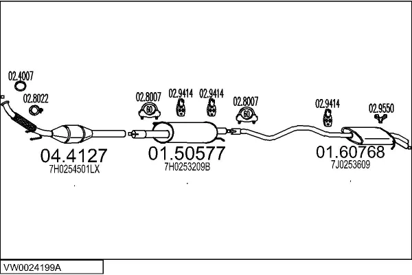 VW TRANSPORTER T5 valník/podvozek (7JD, 7JE, 7JL, 7JY, 7JZ, 7FD 1.9 TDI - Výfukový systém - kompletní od 4/2003 do 11/2009, 1896 ccm, 63 kW, 85 hp, AXC, valník/podvozek