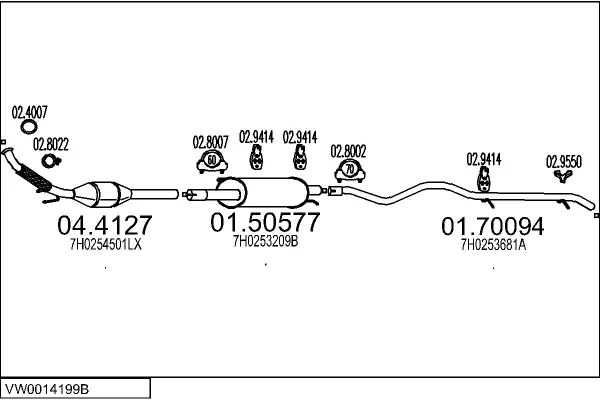 VW TRANSPORTER T5 Krabice (7HA, 7HH, 7EA, 7EH) 1.9 TDI - Výfukový systém - kompletní od 4/2003 do 11/2009, 1896 ccm, 63 kW, 85 hp, AXC, Krabice