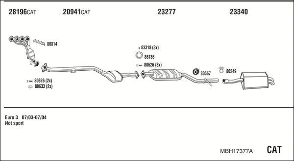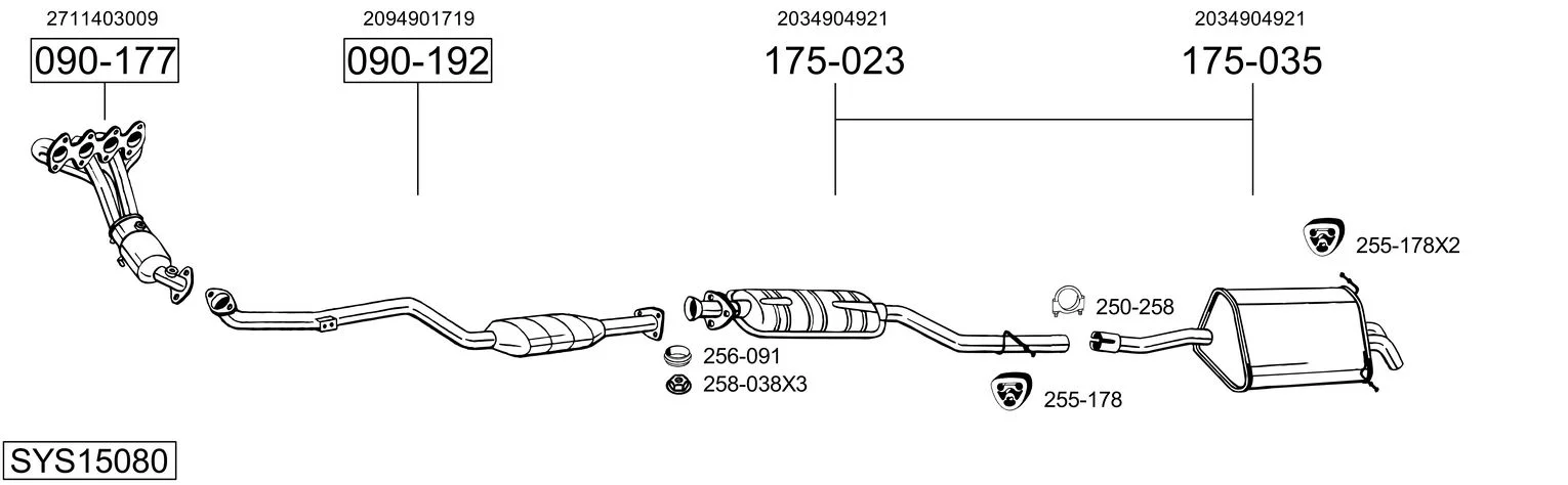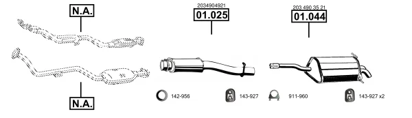 MERCEDES-BENZ C-CLASS T-Model (S203) C 200 CGI Kompressor (203.243) - Výfukový systém - kompletní od 7/2003 do 8/2007, 1796 ccm, 125 kW, 170 hp, M 271.942, kombi
