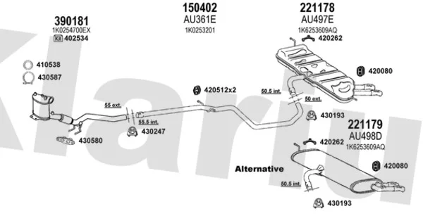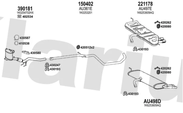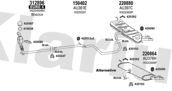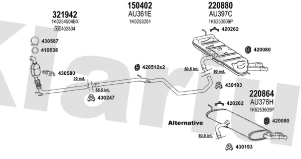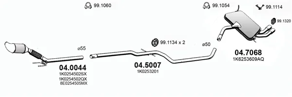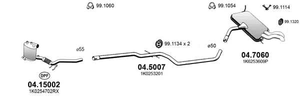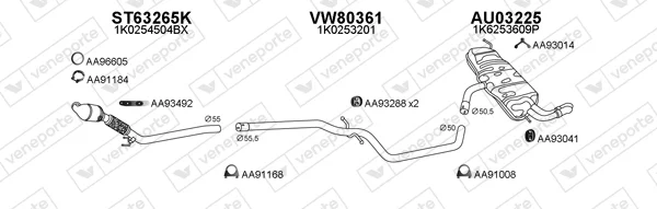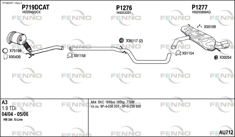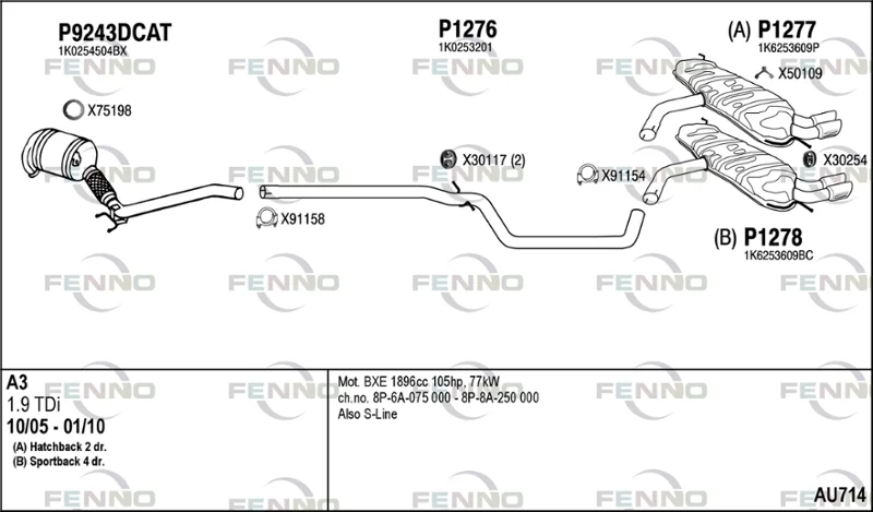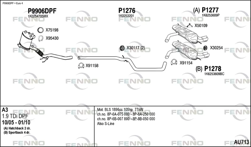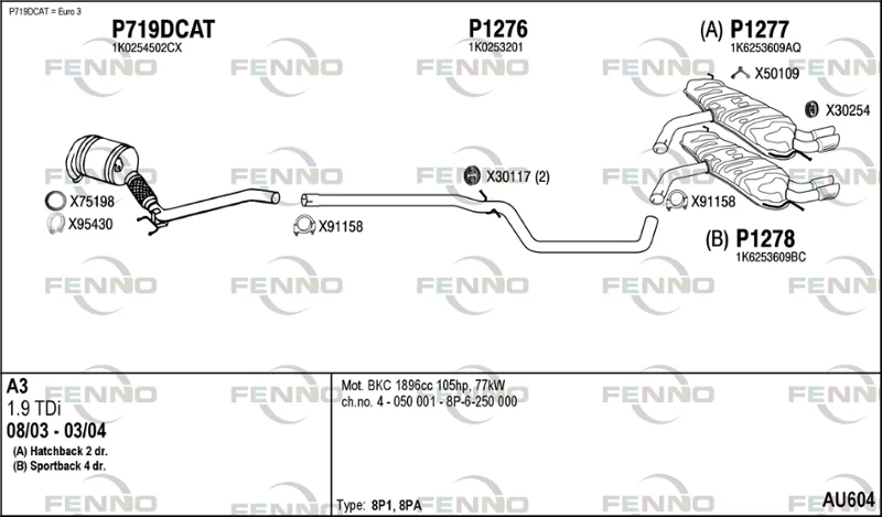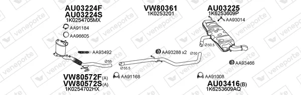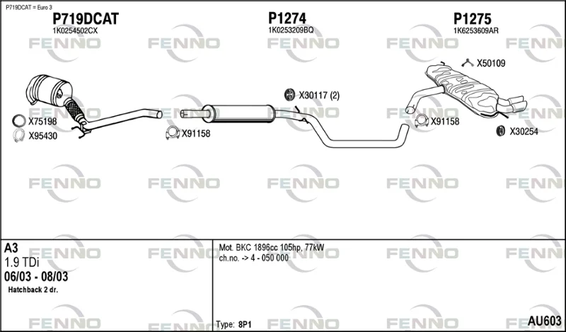 AUDI A3 (8P1) 1.9 TDI - Výfukový systém - kompletní od 5/2003 do 5/2010, 1896 ccm, 77 kW, 105 hp, BKC, BLS, BXE, Šikmá zadní část