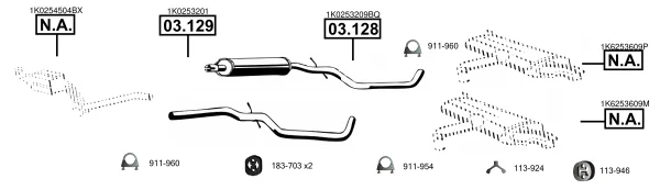 AUDI A3 (8P1) 1.9 TDI - Výfukový systém - kompletní od 5/2003 do 5/2010, 1896 ccm, 77 kW, 105 hp, BKC, BLS, BXE, Šikmá zadní část