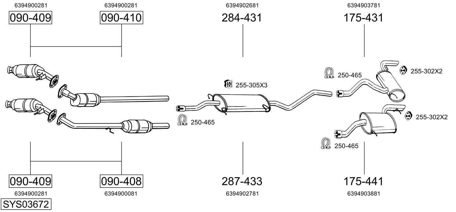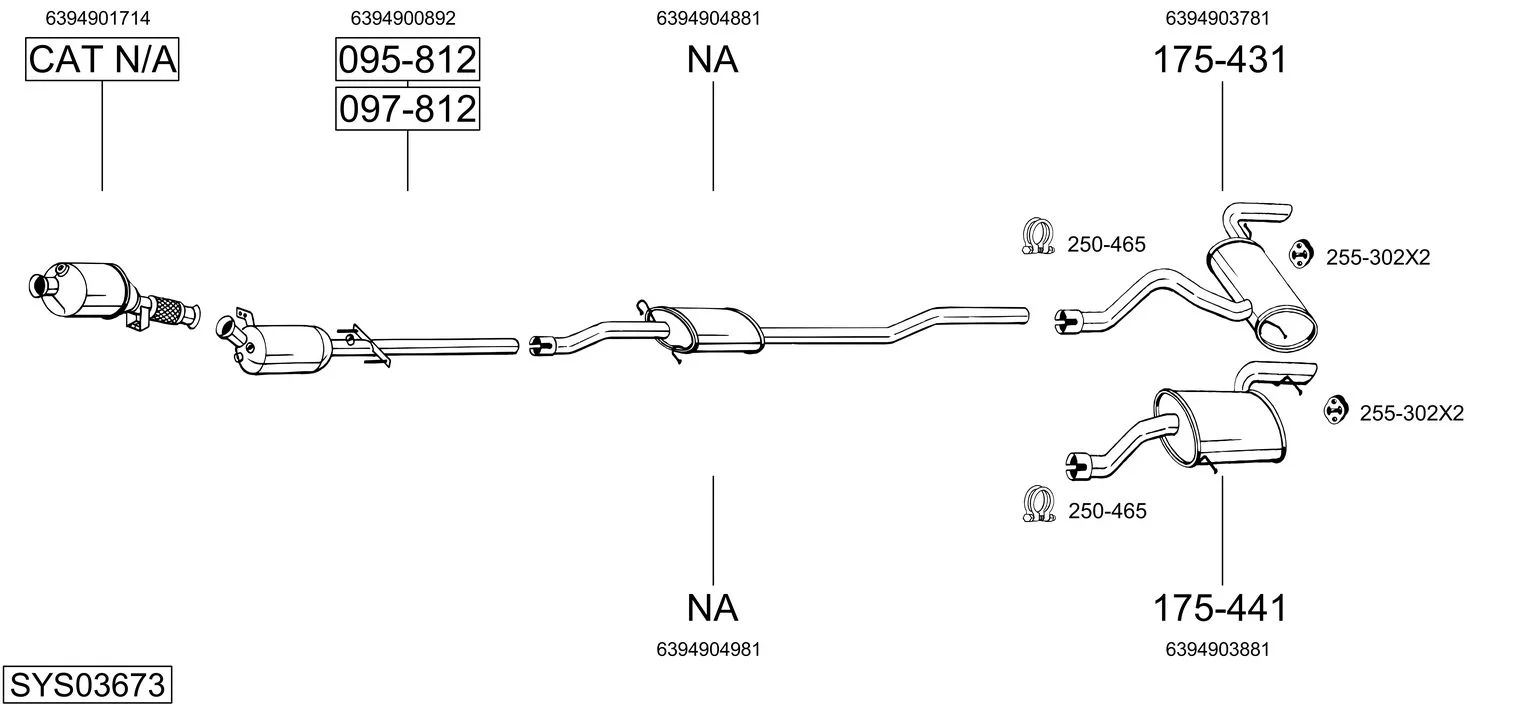 MERCEDES-BENZ VIANO (W639) CDI 2.2 (639.711, 639.713, 639.811, 639.813, 639.815) - Výfukový systém - kompletní od 9/2003, 2148 ccm, 110 kW, 150 hp, OM 646.980, OM 646.982, autobus