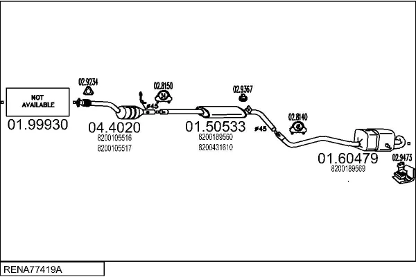 RENAULT SCÉNIC II (JM0/1_) 1.4 (JM0B, JM0H, JM1A) - Výfukový systém - kompletní od 6/2003 do 11/2008, 1390 ccm, 72 kW, 98 hp, K4J 730, K4J 740, K4J 770, velkoprostorová limuzína