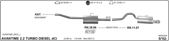 RENAULT AVANTIME (DE0_) 2.2 dCi (DE01) - Výfukový systém - kompletní