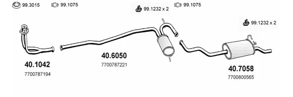 RENAULT 19 I Chamade (L53_) 1.7 (L53F) - Výfukový systém - kompletní od 8/1988 do 12/1992, 1721 ccm, 79 kW, 107 hp, F3N 746, limuzína