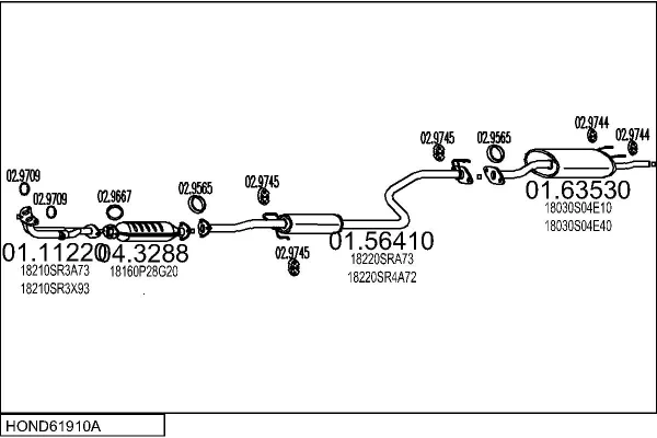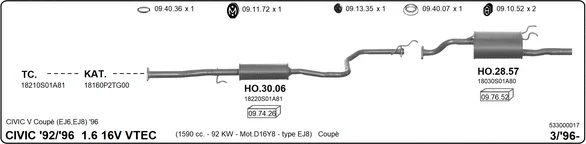 HONDA CIVIC VI kupé (EJ, EM1) 1.6 i Vtec (EM1) - Výfukový systém - kompletní od 3/1996 do 3/2000, 1590 ccm, 92 kW, 125 hp, D16Y8, kupé