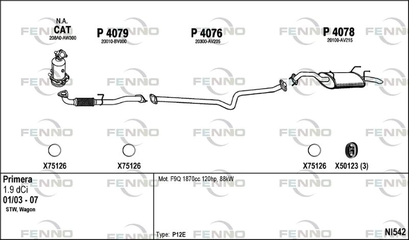 NISSAN PRIMERA kombi (WP12) 1.9 dCi - Výfukový systém - kompletní od 4/2003, 1870 ccm, 88 kW, 120 hp, F9Q, kombi