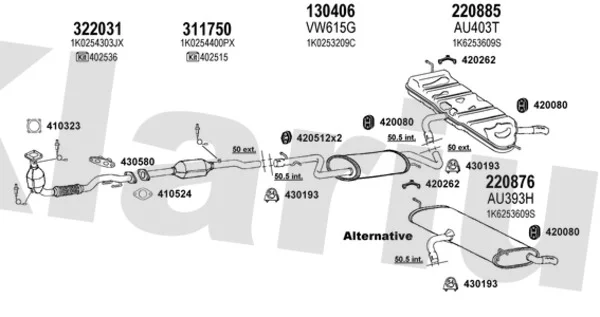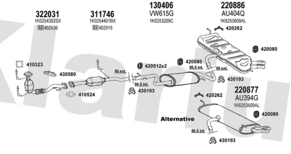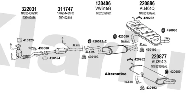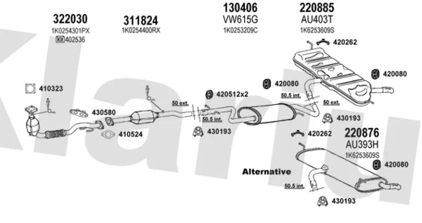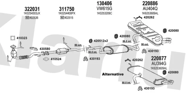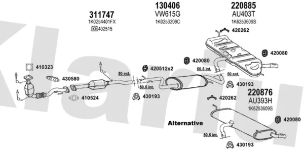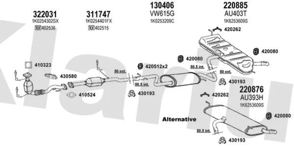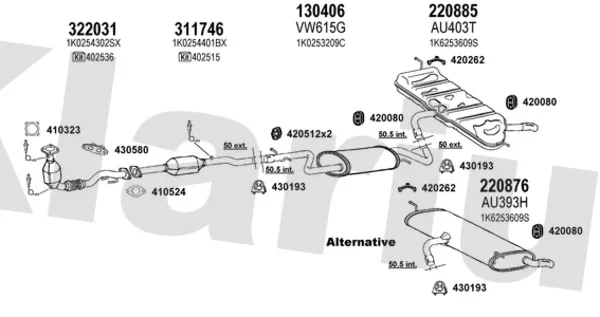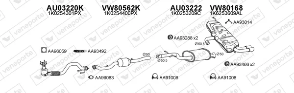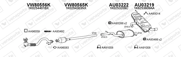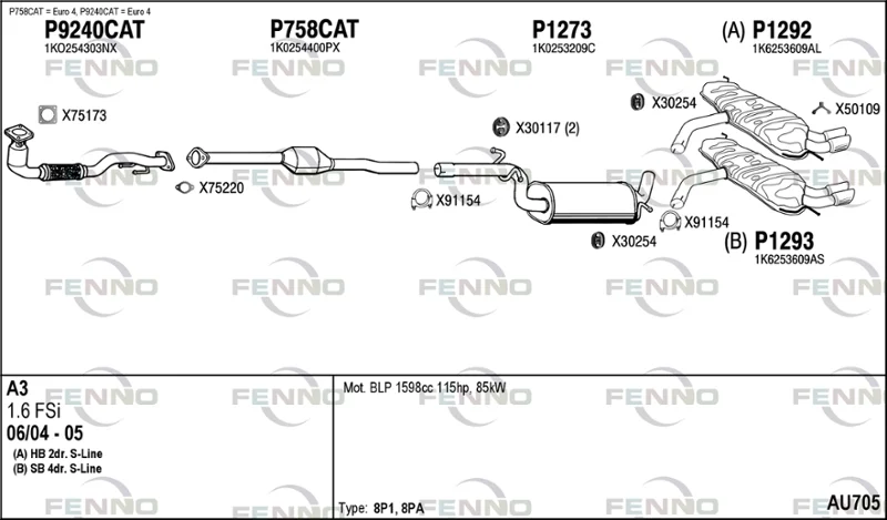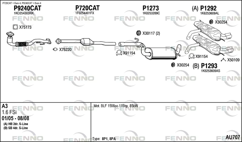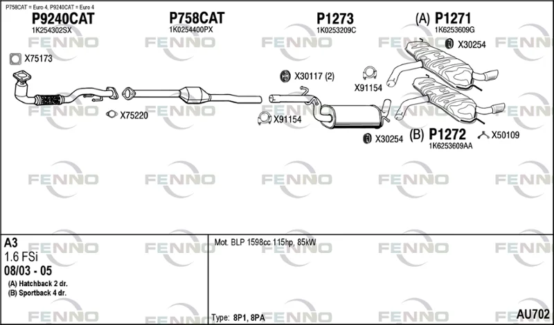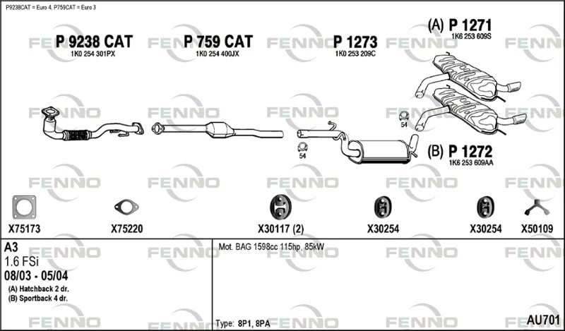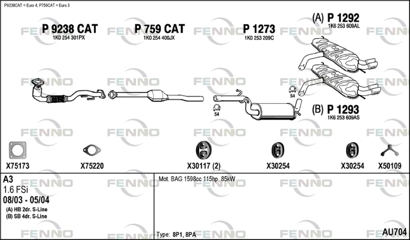 AUDI A3 (8P1) 1.6 FSI - Výfukový systém - kompletní od 8/2003 do 9/2007, 1598 ccm, 85 kW, 115 hp, BAG, BLF, BLP, Šikmá zadní část
