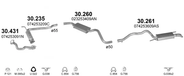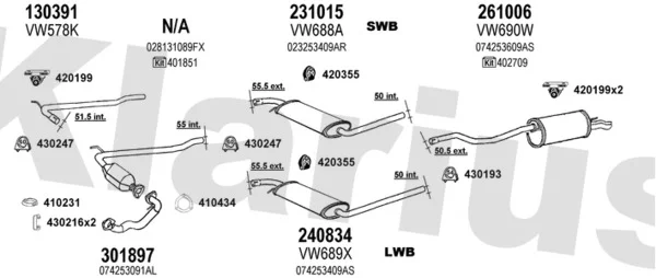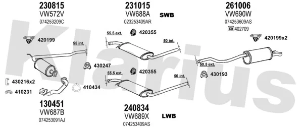 VW TRANSPORTER T4 autobus (70B, 70C, 7DB, 7DK, 70J, 70K, 7DC, 7 2.4 D Syncro - Výfukový systém - kompletní od 10/1992 do 9/1998, 2370 ccm, 57 kW, 78 hp, AAB, autobus