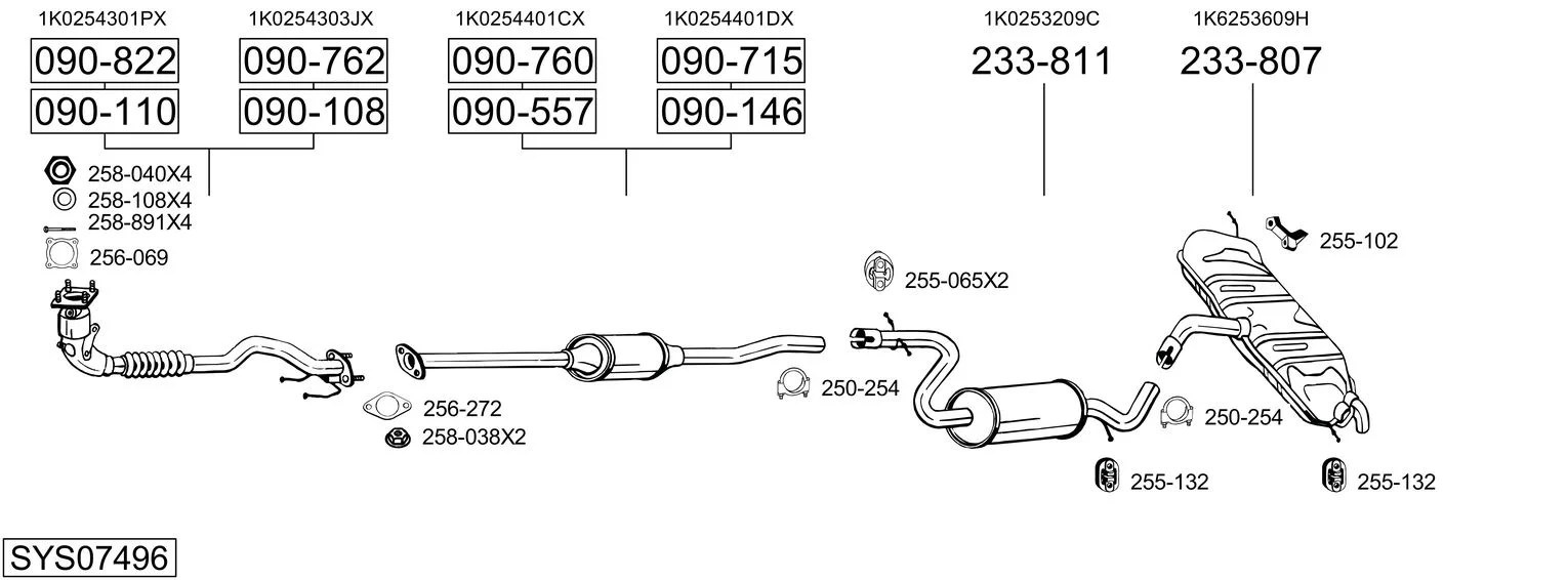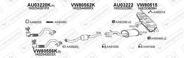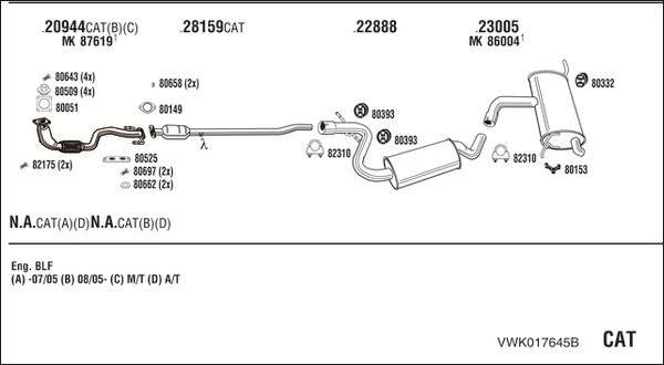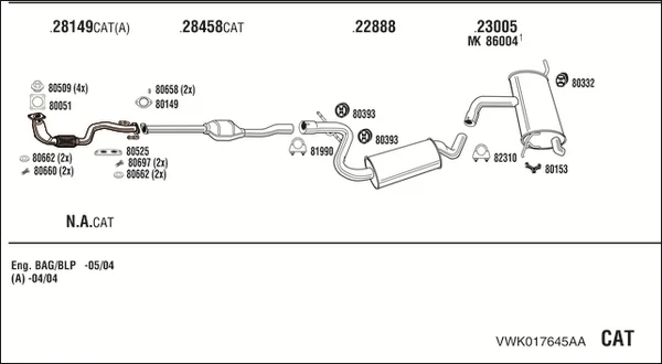 VW GOLF V (1K1) 1.6 FSI - Výfukový systém - kompletní od 10/2003 do 7/2008, 1598 ccm, 85 kW, 115 hp, BAG, BLF, BLP, Šikmá zadní část