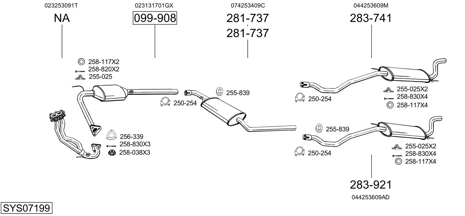 VW TRANSPORTER T4 autobus (70B, 70C, 7DB, 7DK, 70J, 70K, 7DC, 7 2.5 - Výfukový systém - kompletní od 9/1990 do 6/2003, 2461 ccm, 81 kW, 110 hp, AAF, ACU, AEN, AEU, autobus