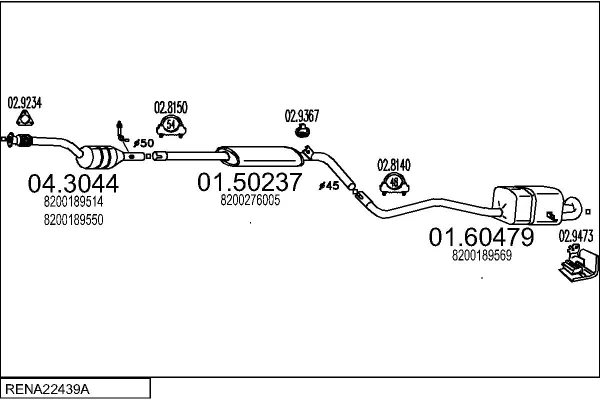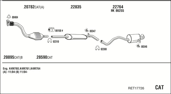 RENAULT MEGANE II limuzína (LM0/1_) 1.6 - Výfukový systém - kompletní od 9/2003, 1598 ccm, 83 kW, 113 hp, K4M 760, K4M 761, limuzína
