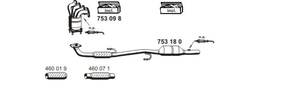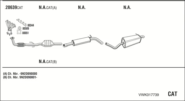 VW POLO IV limuzína (9A4, 9A2, 9N2, 9A6) 1.4 - Výfukový systém - kompletní od 11/2003 do 6/2005, 1390 ccm, 74 kW, 101 hp, BBZ, limuzína