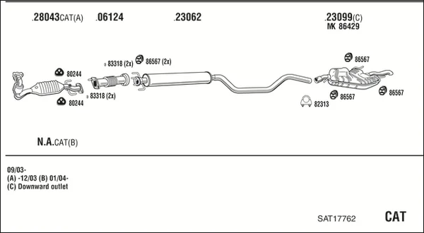 SAAB 9-5 kombi (YS3E) 2.3 Turbo - Výfukový systém - kompletní od 7/2003 do 12/2009, 2290 ccm, 162 kW, 220 hp, B235L, kombi