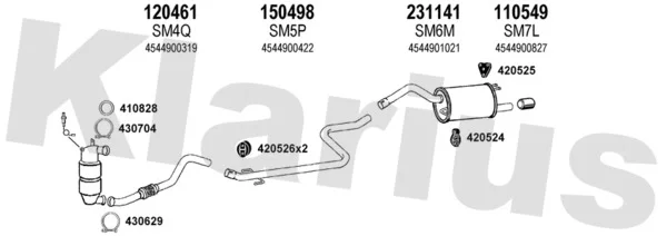 SMART FORFOUR (454) 1.5 CDI (454.000) - Výfukový systém - kompletní od 9/2004 do 6/2006, 1493 ccm, 50 kW, 68 hp, OM 639.939, Šikmá zadní část