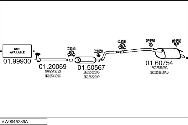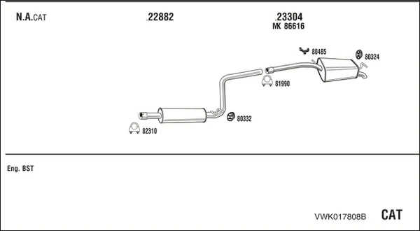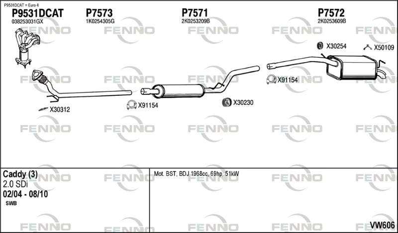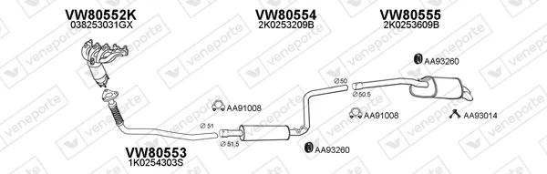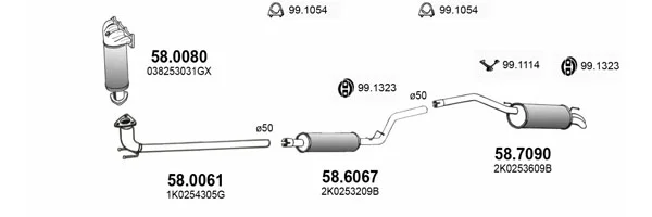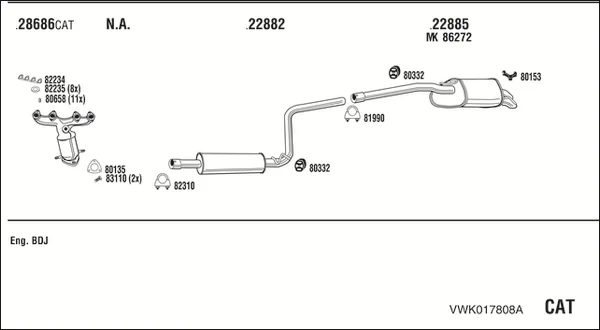 VW CADDY III Skříňová/velkoprostorová limuzína (2KA, 2KH, 2CA, 2.0 SDI - Výfukový systém - kompletní od 3/2004 do 8/2010, 1968 ccm, 51 kW, 70 hp, BDJ, BST, Skříňová/velkoprostorová limuzína