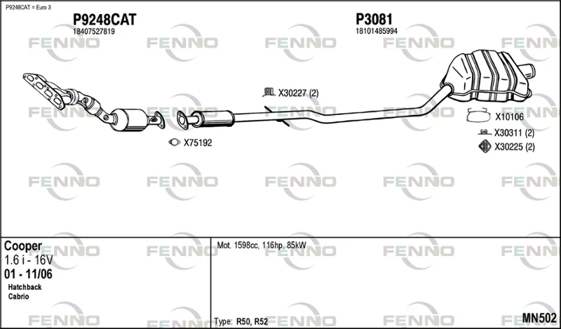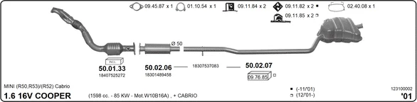 MINI MINI Kabriolet (R52) Cooper - Výfukový systém - kompletní od 4/2004 do 7/2008, 1598 ccm, 85 kW, 116 hp, W10 B16 A, Kabriolet