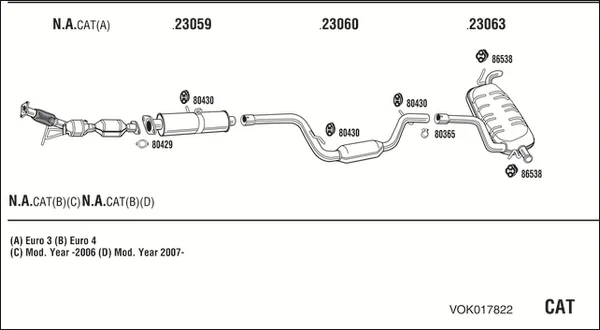 VOLVO S40 II (544) 2.4 - Výfukový systém - kompletní od 1/2004 do 12/2012, 2435 ccm, 125 kW, 170 hp, B 5244 S4, limuzína