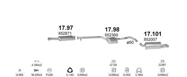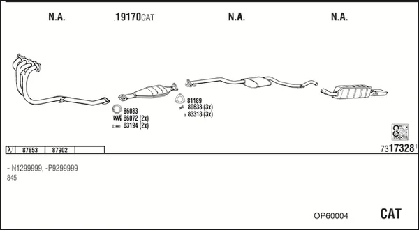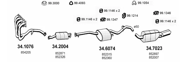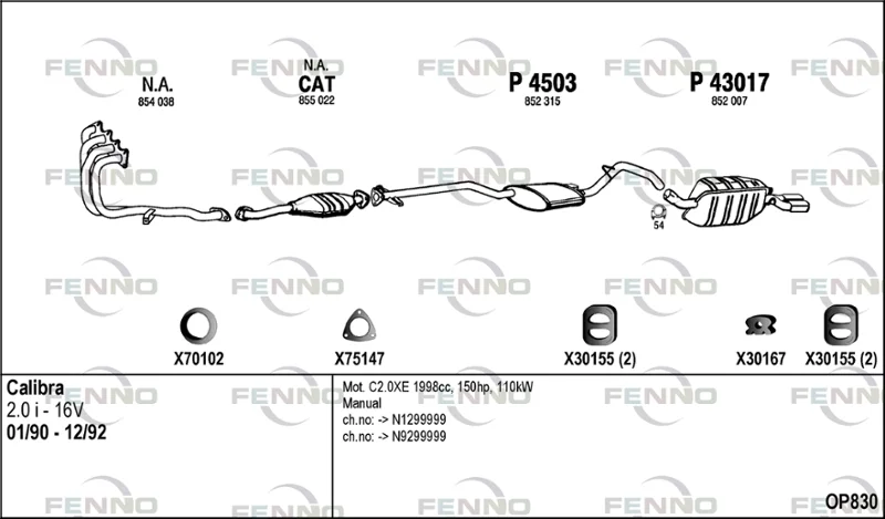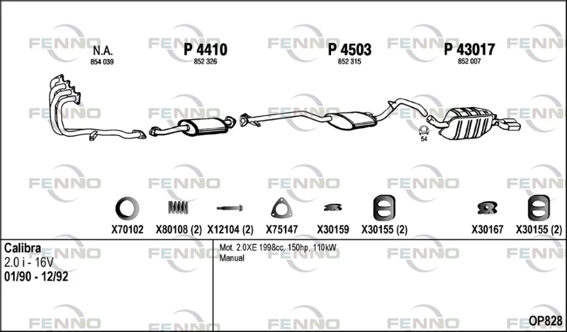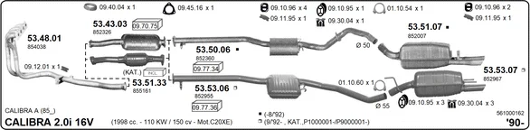 OPEL CALIBRA A (C89) 2.0 i 16V (M07) - Výfukový systém - kompletní od 6/1990 do 2/1994, 1998 ccm, 110 kW, 150 hp, C 20 XE, kupé