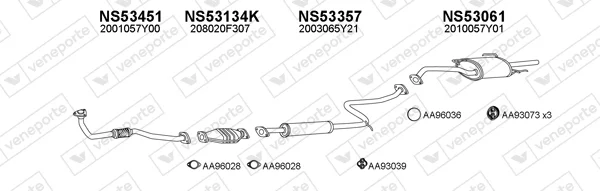 NISSAN SUNNY III (N14, B13) 1.4 i 16V - Výfukový systém - kompletní od 10/1990 do 6/1995, 1392 ccm, 64 kW, 87 hp, GA14DE, limuzína