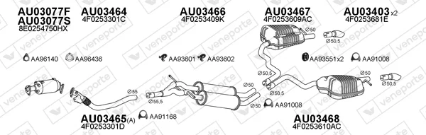 AUDI A6 C6 (4F2) 2.0 TDI - Výfukový systém - kompletní od 7/2004 do 10/2008, 1968 ccm, 103 kW, 140 hp, BLB, BRE, limuzína